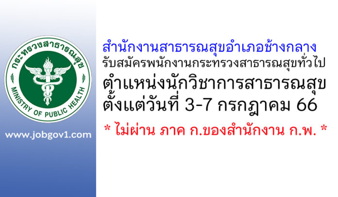 สำนักงานสาธารณสุขอำเภอช้างกลาง รับสมัครพนักงานกระทรวงสาธารณสุขทั่วไป ตำแหน่งนักวิชาการสาธารณสุข ตั้งแต่วันที่ 3-7 กรกฎาคม 2566