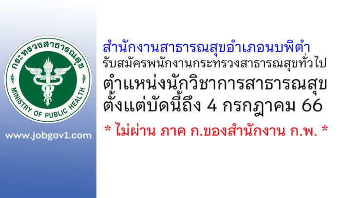 สำนักงานสาธารณสุขอำเภอนบพิตำ รับสมัครพนักงานกระทรวงสาธารณสุขทั่วไป ตำแหน่งนักวิชาการสาธารณสุข ตั้งแต่บัดนี้ถึง 4 กรกฎาคม 2566