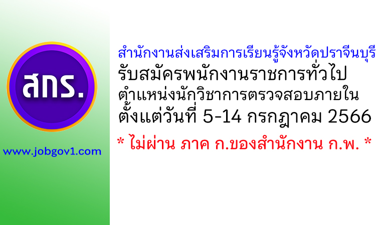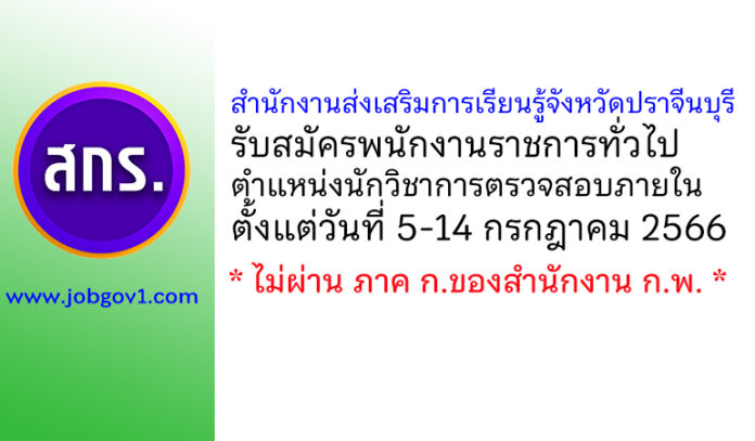 สำนักงานส่งเสริมการเรียนรู้จังหวัดปราจีนบุรี รับสมัครพนักงานราชการทั่วไป ตำแหน่งนักวิชาการตรวจสอบภายใน ตั้งแต่วันที่ 5-14 กรกฎาคม 2566