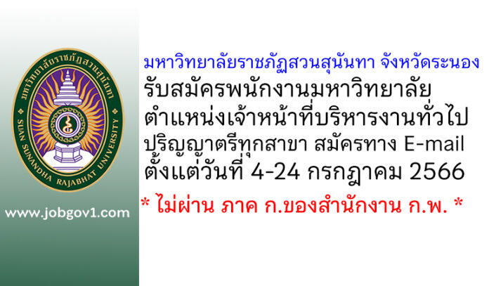 มหาวิทยาลัยราชภัฏสวนสุนันทา จังหวัดระนอง รับสมัครพนักงานมหาวิทยาลัย ตำแหน่งเจ้าหน้าที่บริหารงานทั่วไป ตั้งแต่วันที่ 4-24 กรกฎาคม 2566