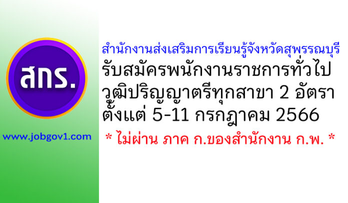 สำนักงานส่งเสริมการเรียนรู้จังหวัดสุพรรณบุรี รับสมัครบุคคลเพื่อเลือกสรรเป็นพนักงานราชการทั่วไป 2 อัตรา ตั้งแต่ 5-11 กรกฎาคม 2566