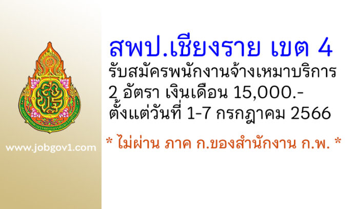 สพป.เชียงราย เขต 4 รับสมัครพนักงานจ้างเหมาบริการ 2 อัตรา ตั้งแต่วันที่ 1-7 กรกฎาคม 2566
