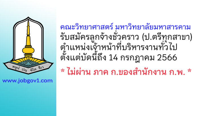 คณะวิทยาศาสตร์ มหาวิทยาลัยมหาสารคาม รับสมัครลูกจ้างชั่วคราว ตำแหน่งเจ้าหน้าที่บริหารงานทั่วไป ตั้งแต่บัดนี้ถึง 14 กรกฎาคม 2566