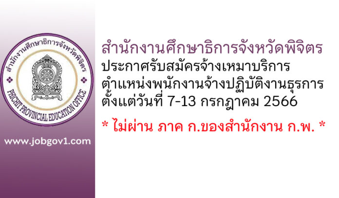 สำนักงานศึกษาธิการจังหวัดพิจิตร รับสมัครจ้างเหมาบริการ ตำแหน่งพนักงานจ้างปฏิบัติงานธุรการ ตั้งแต่วันที่ 7-13 กรกฎาคม 2566