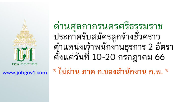 ด่านศุลกากรนครศรีธรรมราช รับสมัครลูกจ้างชั่วคราว ตำแหน่งเจ้าพนักงานธุรการ 2 อัตรา ตั้งแต่วันที่ 10-20 กรกฎาคม 2566