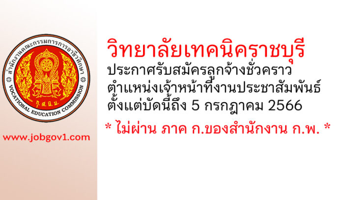 วิทยาลัยเทคนิคราชบุรี รับสมัครลูกจ้างชั่วคราว ตำแหน่งเจ้าหน้าที่งานประชาสัมพันธ์ ตั้งแต่บัดนี้ถึง 5 กรกฎาคม 2566