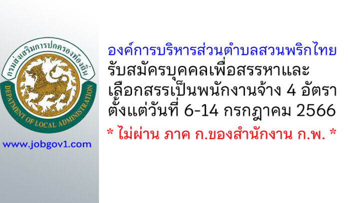 องค์การบริหารส่วนตำบลสวนพริกไทย รับสมัครบุคคลเพื่อสรรหาและเลือกสรรเป็นพนักงานจ้าง 4 อัตรา ตั้งแต่วันที่ 6-14 กรกฎาคม 2566