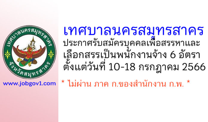 เทศบาลนครสมุทรสาคร รับสมัครบุคคลเพื่อสรรหาและเลือกสรรเป็นพนักงานจ้าง 6 อัตรา ตั้งแต่วันที่ 10-18 กรกฎาคม 2566