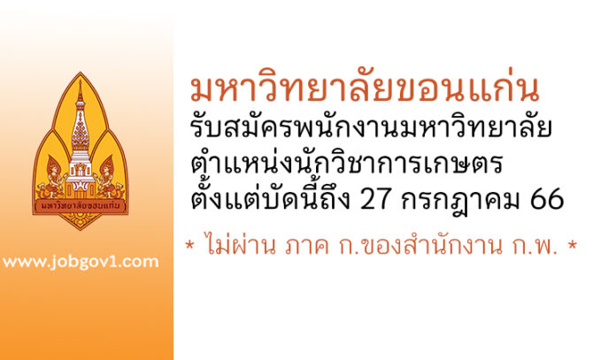 มหาวิทยาลัยขอนแก่น รับสมัครพนักงานมหาวิทยาลัย ตำแหน่งนักวิชาการเกษตร ตั้งแต่บัดนี้ถึง 27 กรกฎาคม 2566