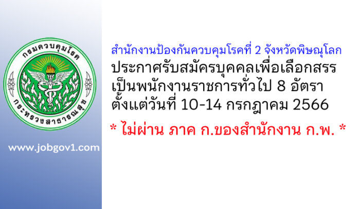 สำนักงานป้องกันควบคุมโรคที่ 2 จังหวัดพิษณุโลก รับสมัครบุคคลเพื่อเลือกสรรเป็นพนักงานราชการทั่วไป 8 อัตรา ตั้งแต่วันที่ 10-14 กรกฎาคม 2566