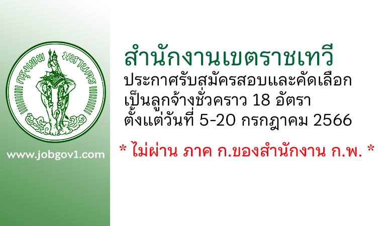 สำนักงานเขตราชเทวี รับสมัครสอบและคัดเลือกเป็นลูกจ้างชั่วคราว 18 อัตรา ตั้งแต่วันที่ 5-20 กรกฎาคม 2566