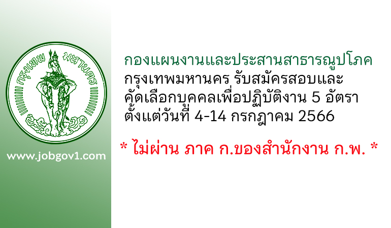กองแผนงานและประสานสาธารณูปโภค กรุงเทพมหานคร รับสมัครสอบและคัดเลือกบุคคลเพื่อปฏิบัติงาน 5 อัตรา ตั้งแต่วันที่ 4-14 กรกฎาคม 2566