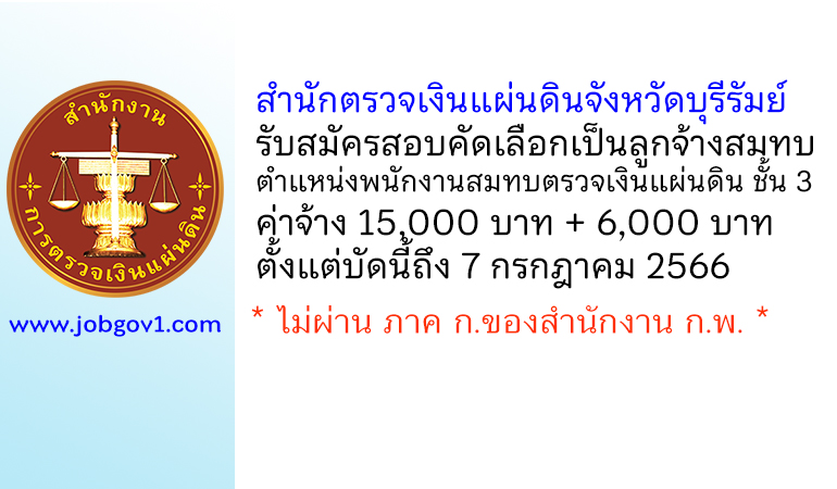 สำนักตรวจเงินแผ่นดินจังหวัดบุรีรัมย์ รับสมัครสอบคัดเลือกเป็นลูกจ้างสมทบ ตำแหน่งพนักงานสมทบตรวจเงินแผ่นดิน ชั้น 3
