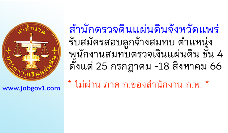 สำนักตรวจดินแผ่นดินจังหวัดแพร่ รับสมัครสอบคัดเลือกเป็นลูกจ้างสมทบ ตำแหน่งพนักงานสมทบตรวจเงินแผ่นดิน ชั้น 4