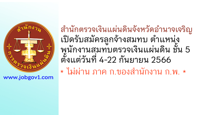 สำนักตรวจเงินแผ่นดินจังหวัดอำนาจเจริญ รับสมัครลูกจ้างสมทบ ตำแหน่งพนักงานสมทบตรวจเงินแผ่นดิน ชั้น 5 ตั้งแต่วันที่ 4-22 กันยายน 2566