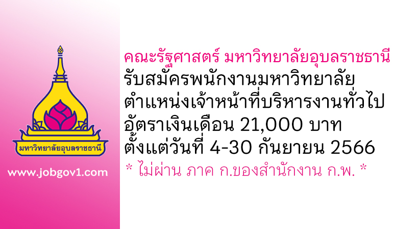 คณะรัฐศาสตร์ มหาวิทยาลัยอุบลราชธานี รับสมัครเจ้าหน้าที่บริหารงานทั่วไป 2 อัตรา ตั้งแต่บัดนี้ถึง 20 เมษายน 2567