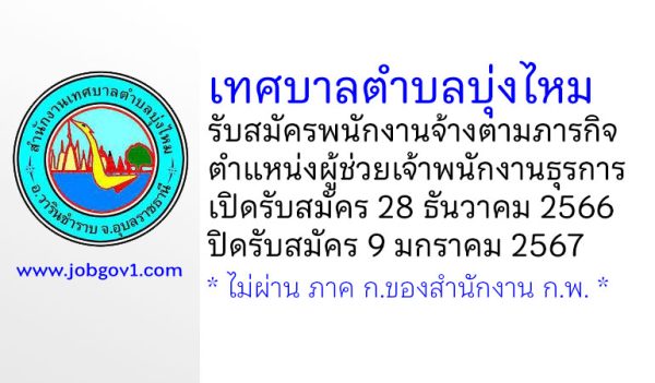 เทศบาลตำบลบุ่งไหม รับสมัครพนักงานจ้างตามภารกิจ ตำแหน่งผู้ช่วยเจ้าพนักงานธุรการ ตั้งแต่วันที่ 28 ธันวาคม 2566 – 9 มกราคม 2567