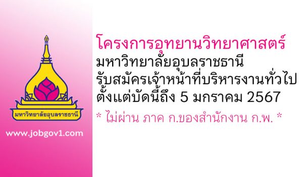 โครงการอุทยานวิทยาศาสตร์ มหาวิทยาลัยอุบลราชธานี รับสมัครลูกจ้างชั่วคราว ตำแหน่งเจ้าหน้าที่บริหารงานทั่วไป ตั้งแต่บัดนี้ถึง 5 มกราคม 2567