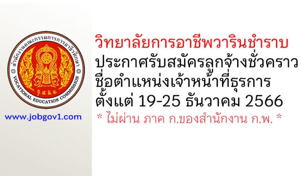 วิทยาลัยการอาชีพวารินชำราบ รับสมัครลูกจ้างชั่วคราว ตำแหน่งเจ้าหน้าที่ธุรการ ตั้งแต่วันที่ 19-25 ธันวาคม 2566