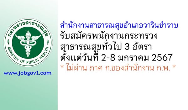 สำนักงานสาธารณสุขอำเภอวารินชำราบ รับสมัครพนักงานกระทรวงสาธารณสุขทั่วไป 3 อัตรา ตั้งแต่วันที่ 2-8 มกราคม 2567