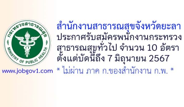 สำนักงานสาธารณสุขจังหวัดยะลา รับสมัครพนักงานกระทรวงสาธารณสุขทั่วไป 10 อัตรา ตั้งแต่บัดนี้ถึง 7 มิถุนายน 2567