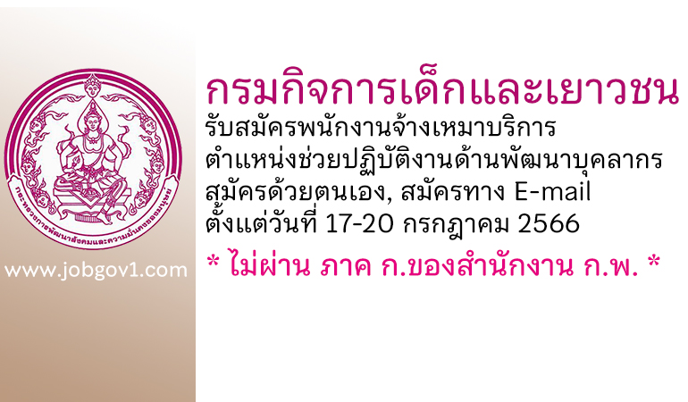 กรมกิจการเด็กและเยาวชน รับสมัครพนักงานจ้างเหมาบริการ ตำแหน่งช่วยปฏิบัติงานด้านพัฒนาบุคลากร ตั้งแต่วันที่ 17-20 กรกฎาคม 2566