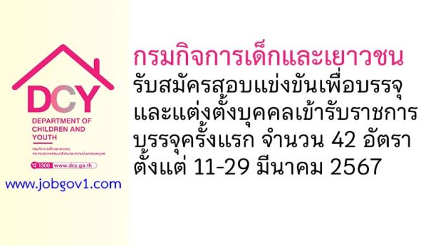 กรมกิจการเด็กและเยาวชน รับสมัครสอบแข่งขันเพื่อบรรจุและแต่งตั้งบุคคลเข้ารับราชการ 42 อัตรา ตั้งแต่วันที่ 11-29 มีนาคม 2567