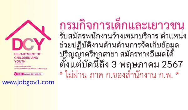 กรมกิจการเด็กและเยาวชน รับสมัครพนักงานจ้างเหมาบริการ ตำแหน่งช่วยปฏิบัติงานด้านด้านการจัดเก็บข้อมูล