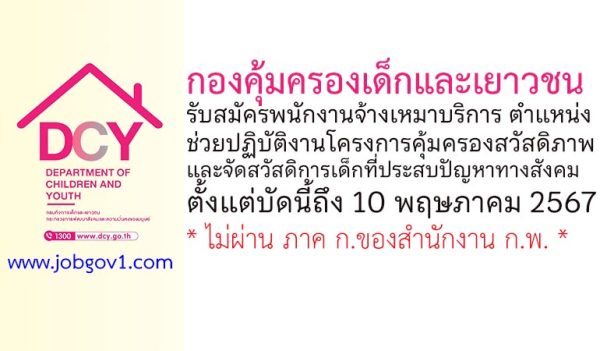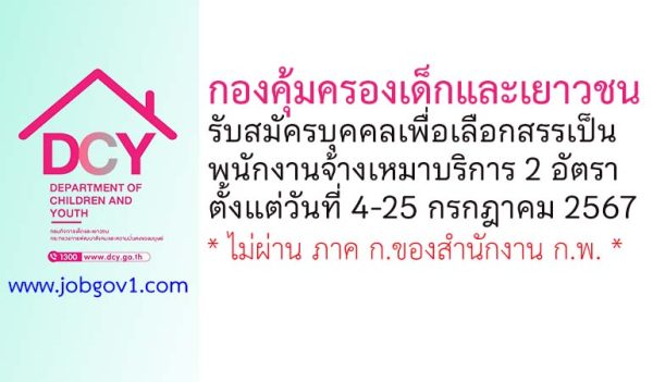 กองคุ้มครองเด็กและเยาวชน รับสมัครบุคคลเพื่อเลือกสรรเป็นพนักงานจ้างเหมาบริการ 2 อัตรา ตั้งแต่วันที่ 4-25 กรกฎาคม 2567