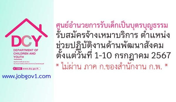ศูนย์อำนวยการรับเด็กเป็นบุตรบุญธรรม รับสมัครจ้างเหมาบริการ ตำแหน่งช่วยปฏิบัติงานด้านพัฒนาสังคม ตั้งแต่วันที่ 1-10 กรกฎาคม 2567