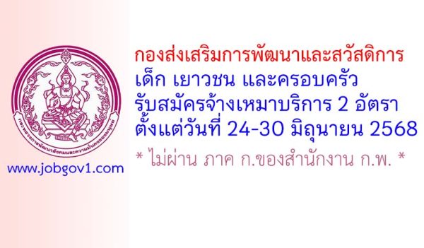 กองส่งเสริมการพัฒนาและสวัสดิการเด็ก เยาวชน และครอบครัว รับสมัครจ้างเหมาบริการบุคคลธรรมดา 2 อัตรา ตั้งแต่วันที่ 24-30 มิถุนายน 2568
