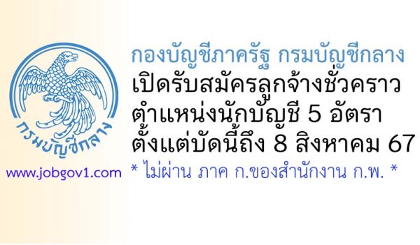 กองบัญชีภาครัฐ กรมบัญชีกลาง รับสมัครลูกจ้างชั่วคราว ตำแหน่งนักบัญชี 5 อัตรา ตั้งแต่บัดนี้ถึง 8 สิงหาคม 2567