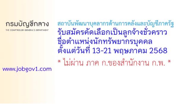 สถาบันพัฒนาบุคลากรด้านการคลังและบัญชีภาครัฐ รับสมัครคัดเลือกเป็นลูกจ้างชั่วคราว ตำแหน่งนักทรัพยากรบุคคล ตั้งแต่วันที่ 13-21 พฤษภาคม 2568