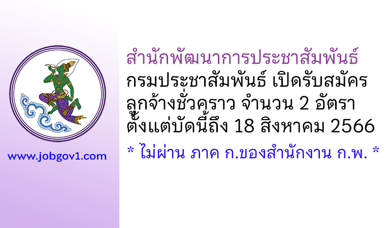 สำนักพัฒนาการประชาสัมพันธ์ รับสมัครลูกจ้างชั่วคราว 2 อัตรา ตั้งแต่บัดนี้ถึง 18 สิงหาคม 2566