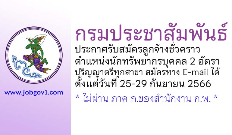 กรมประชาสัมพันธ์ รับสมัครลูกจ้างชั่วคราว ตำแหน่งนักทรัพยากรบุคคล 2 อัตรา ตั้งแต่วันที่ 25-29 กันยายน 2566