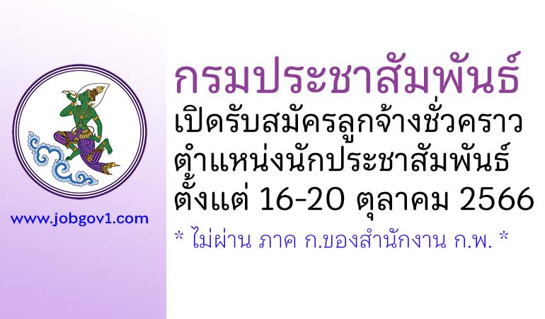 กรมประชาสัมพันธ์ รับสมัครลูกจ้างชั่วคราว ตำแหน่งนักประชาสัมพันธ์ ตั้งแต่วันที่ 16-20 ตุลาคม 2566
