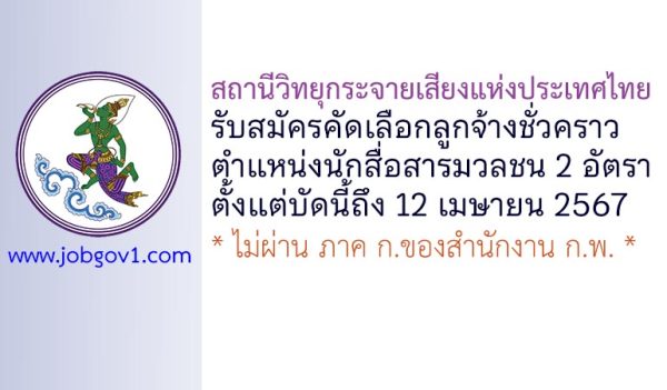 สถานีวิทยุกระจายเสียงแห่งประเทศไทย รับสมัครคัดเลือกลูกจ้างชั่วคราว ตำแหน่งนักสื่อสารมวลชน 2 อัตรา ตั้งแต่บัดนี้ถึง 12 เมษายน 2567