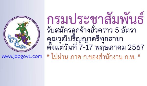 กรมประชาสัมพันธ์ รับสมัครลูกจ้างชั่วคราว 5 อัตรา ตั้งแต่วันที่ 7-17 พฤษภาคม 2567