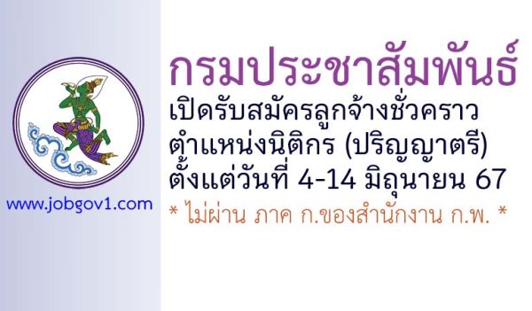 กรมประชาสัมพันธ์ รับสมัครลูกจ้างชั่วคราว ตำแหน่งนิติกร ตั้งแต่วันที่ 4-14 มิถุนายน 2567