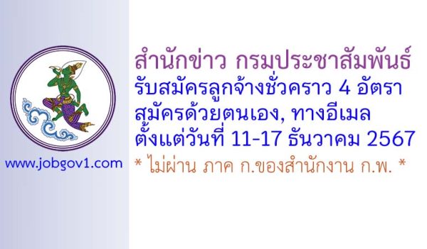 สำนักข่าว กรมประชาสัมพันธ์ รับสมัครลูกจ้างชั่วคราว 4 อัตรา ตั้งแต่วันที่ 11-17 ธันวาคม 2567
