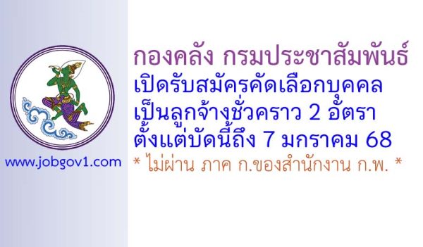 กองคลัง กรมประชาสัมพันธ์ รับสมัครคัดเลือกบุคคลเป็นลูกจ้างชั่วคราว 2 อัตรา ตั้งแต่บัดนี้ถึง 7 มกราคม 2568