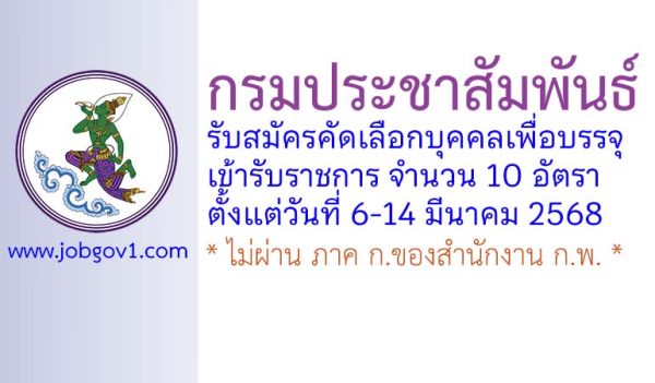 กรมประชาสัมพันธ์ รับสมัครคัดเลือกบุคคลเพื่อบรรจุเข้ารับราชการ 10 อัตรา ตั้งแต่วันที่ 6-14 มีนาคม 2568