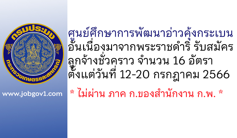 ศูนย์ศึกษาการพัฒนาอ่าวคุ้งกระเบนอันเนื่องมาจากพระราชดำริ รับสมัครบุคคลเพื่อเลือกสรรเป็นลูกจ้างชั่วคราว 16 อัตรา ตั้งแต่วันที่ 12-20 กรกฎาคม 2566