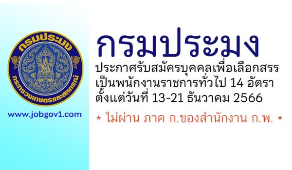 กรมประมง รับสมัครบุคคลเพื่อเลือกสรรเป็นพนักงานราชการทั่วไป 14 อัตรา ตั้งแต่วันที่ 13-21 ธันวาคม 2566