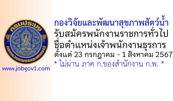 กองวิจัยและพัฒนาสุขภาพสัตว์น้ำ รับสมัครพนักงานราชการทั่วไป ตำแหน่งเจ้าพนักงานธุรการ ตั้งแต่ 23 กรกฎาคม – 1 สิงหาคม 2567