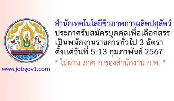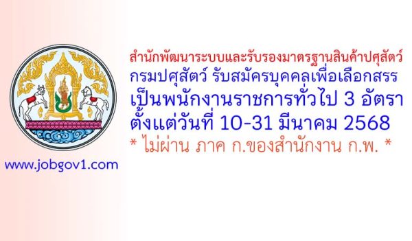 สำนักพัฒนาระบบและรับรองมาตรฐานสินค้าปศุสัตว์ กรมปศุสัตว์ รับสมัครบุคคลเพื่อเลือกสรรเป็นพนักงานราชการทั่วไป 3 อัตรา ตั้งแต่วันที่ 10-31 มีนาคม 2568