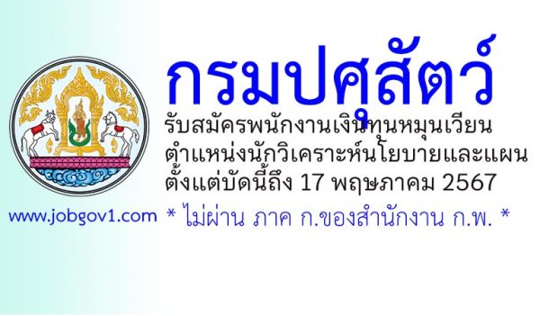 กรมปศุสัตว์ รับสมัครพนักงานราชการทั่วไป ตำแหน่งนักวิเคราะห์นโยบายและแผน ตั้งแต่วันที่ 1-15 สิงหาคม 2568