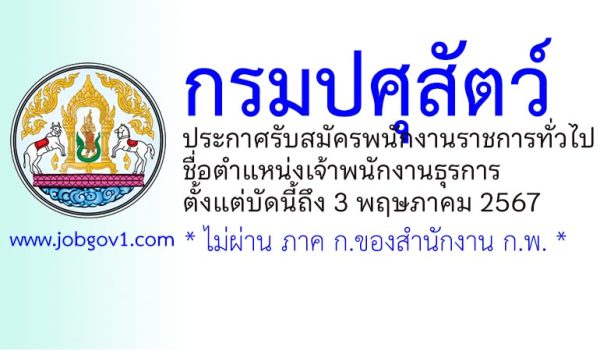 กรมปศุสัตว์ รับสมัครพนักงานราชการทั่วไป ตำแหน่งเจ้าพนักงานธุรการ