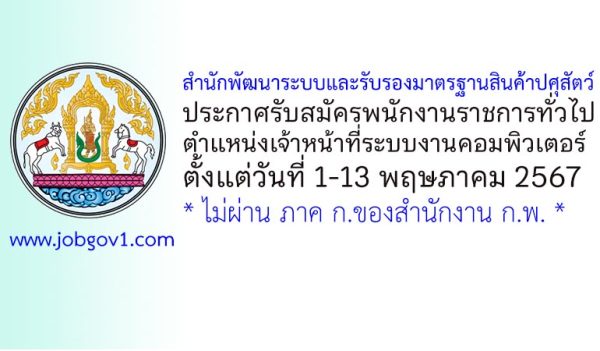 สำนักพัฒนาระบบและรับรองมาตรฐานสินค้าปศุสัตว์ รับสมัครพนักงานราชการทั่วไป ตำแหน่งเจ้าหน้าที่ระบบงานคอมพิวเตอร์