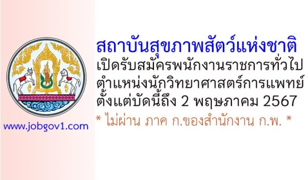 สถาบันสุขภาพสัตว์แห่งชาติ รับสมัครพนักงานราชการทั่วไป ตำแหน่งนักวิชาการสัตวบาล ตั้งแต่บัดนี้ถึง 9 ธันวาคม 2567